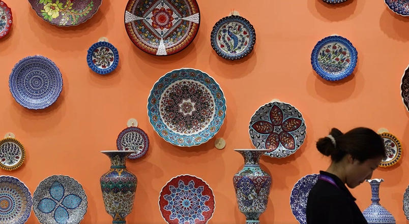 6月27日,一位海外嘉宾正在第十四届夏季达沃斯论坛天津港展区操作体验。新华社记者 刘惟真 摄