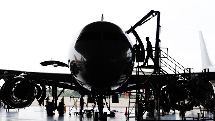 12月9日,工作人员在海南自贸港一站式飞机维修产业基地维修飞机。目前,海口海关实施航空器维修免关税服务新模式和备案航空发动机直通入区监管模式,一站式飞机维修产业基地维修服务能力全面提升。