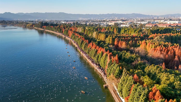 近年来,昆明滇池水域的水生态、水环境持续改善,重现“景美、鸥飞、鱼跃”的生动画卷,吸引众多游客前来打卡。