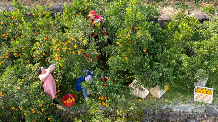 近日,湖北省宜昌市长阳土家族自治县渔峡口镇的清江椪柑进入采销旺季。2024年,全县清江椪柑种植规模达7万亩,年产值约5亿元。产品销往全国29个省市,并出口到马来西亚、加拿大、西亚等国家和地区。清江椪柑已成为当地乡村振兴战略的支柱产业。
