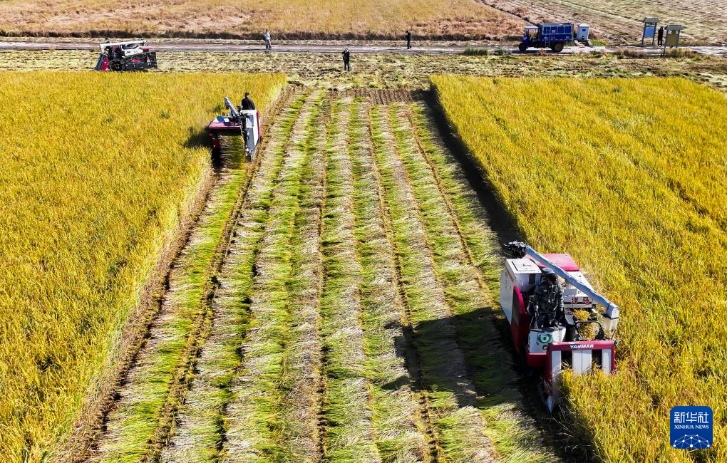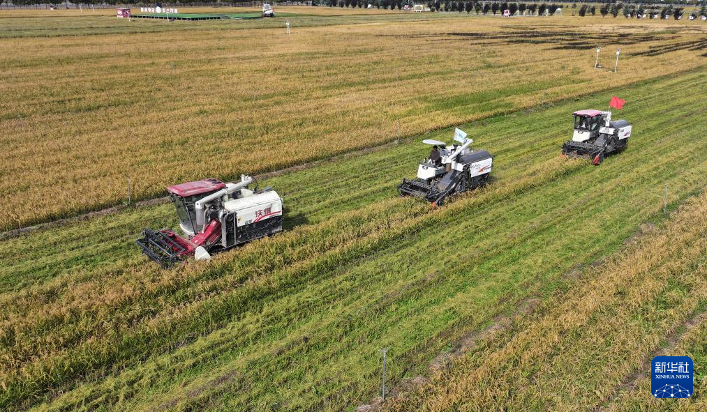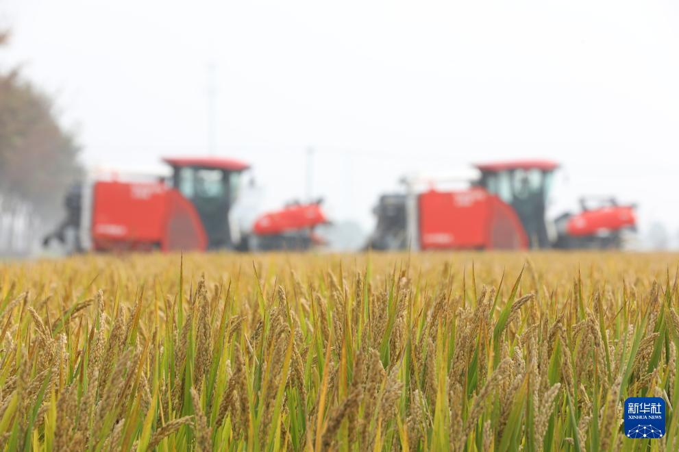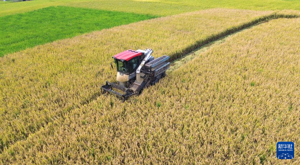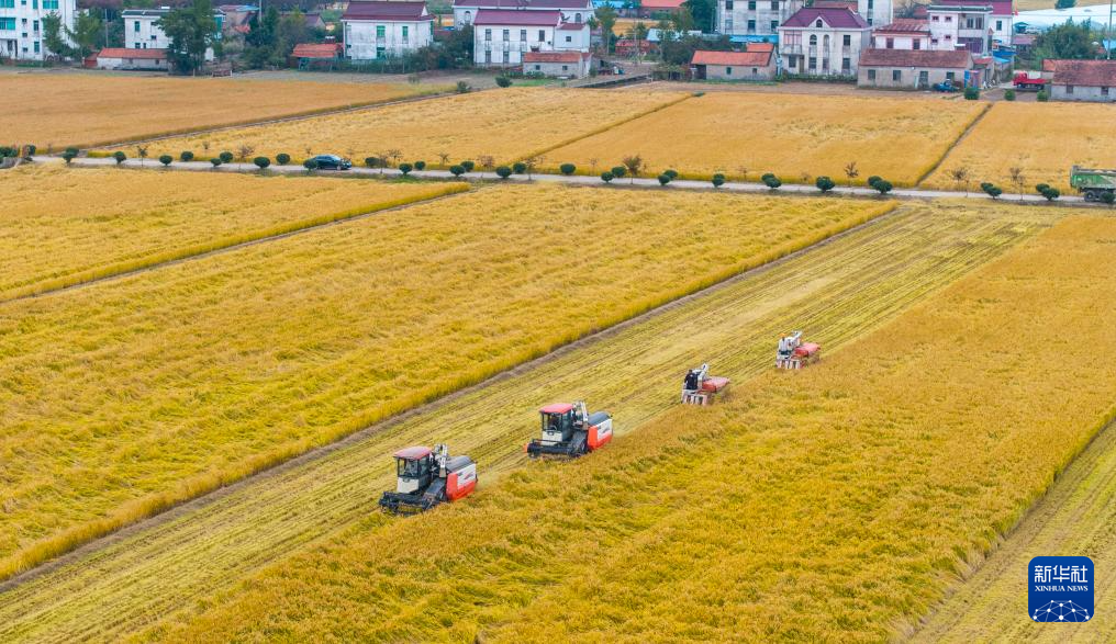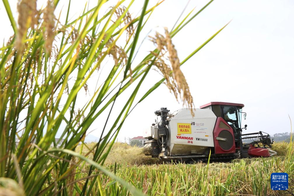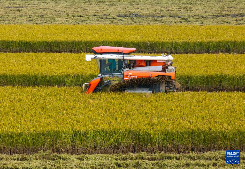 时下正值晚稻成熟期,各地农民抢抓农时收割水稻,田间一派繁忙景象。