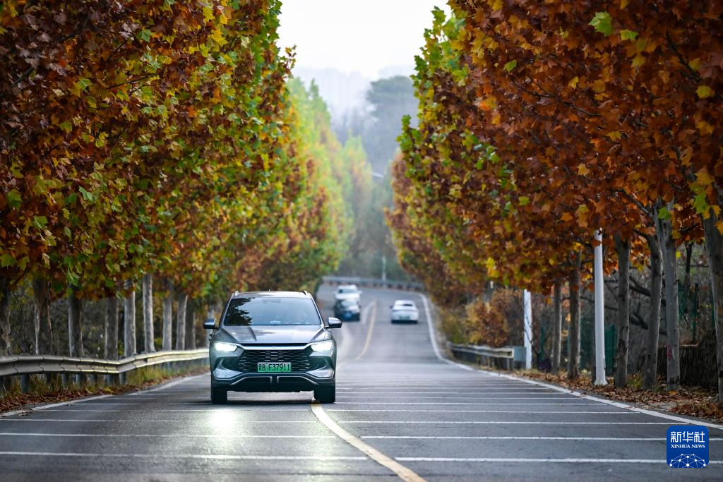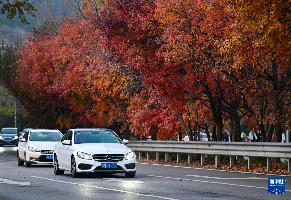 11月8日,车辆行驶在北京红螺寺附近的一条公路上。新华社记者 陈晔华 摄