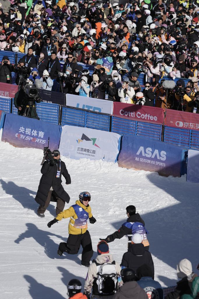 新华社北京12月1日电(记者卢星吉、李嘉、杨帆)从大跳台上高高跃起,360度空翻、后手抓板,前手舒展向沸腾的观众致意,身体和雪板在空中形成代表胜利的“V”字……