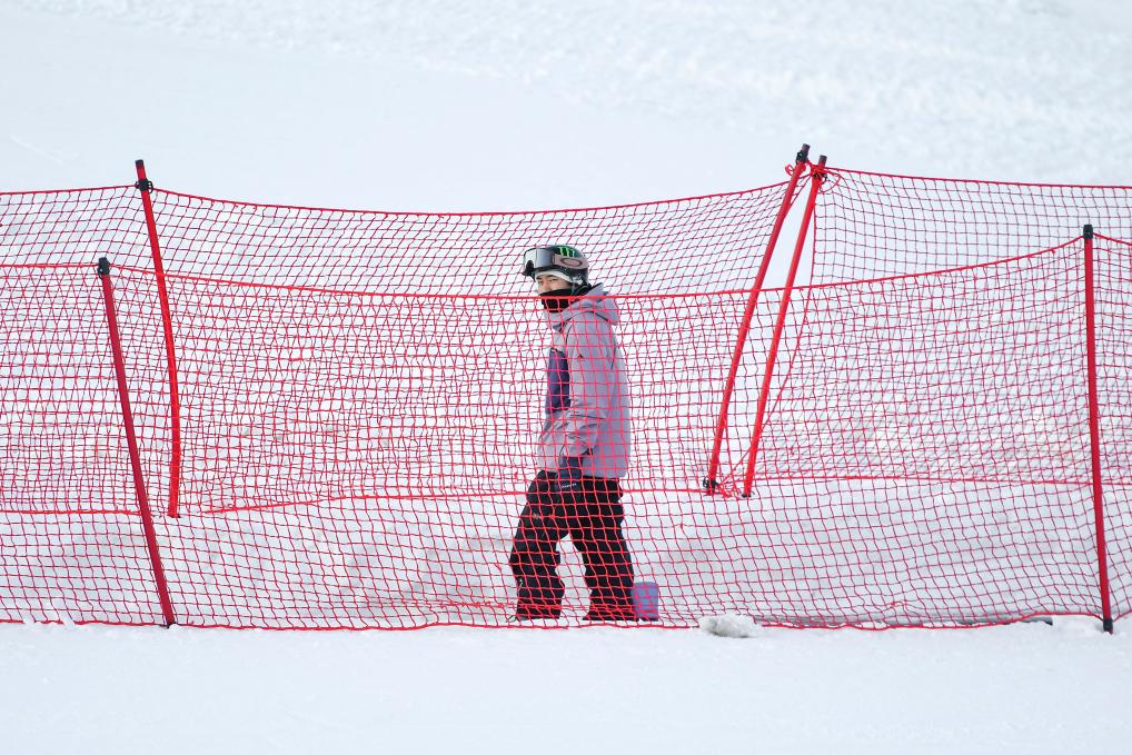 2022年12月10日,北京冬奥会单板滑雪男子大跳台冠军苏翊鸣在吉林市万科松花湖度假区V-PARK地形公园内乘坐“魔毯”。新华社记者 许畅 摄