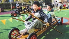 日前,浙江省杭州市萧山区城厢幼儿园举办了第17届运动节。教师和孩子们将传统运动节变成了“项目化学习”大课堂。在这里,孩子们不只是运动员,更是赛场设计师、规则创造者、问题解决家,他们将运动演变为一场融合探究、协作与创造的综合成长体验。图为大班幼儿合作进行划龙舟比赛。沈建红 摄