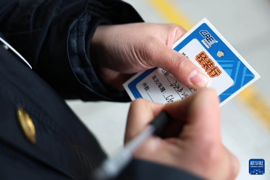 2月8日,中铁快运兰州西站营业部的工作人员雒鹏在填写“轻装行”服务卡的信息。